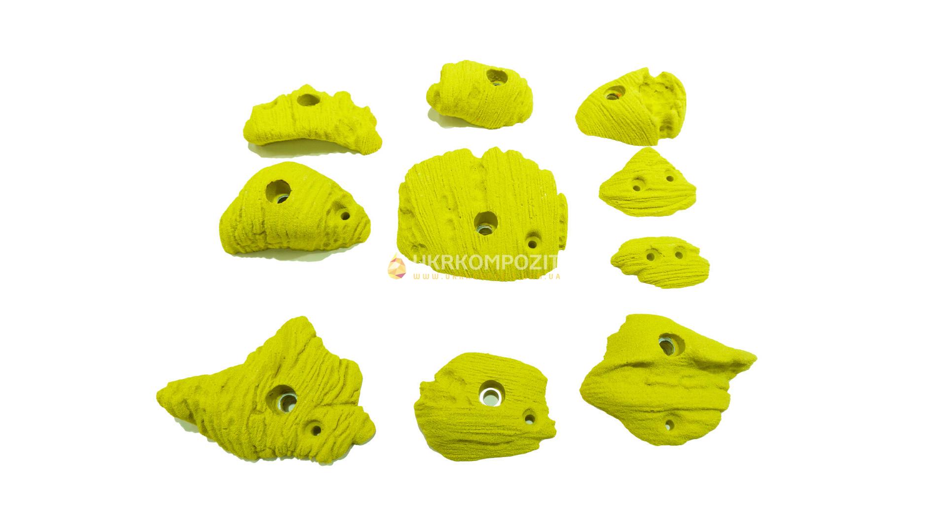 Зачепи «Скеля» — це набір із 10 елементів для облаштування дитячих та спортивних скеледромів. Фактурна поверхня та різна форма зачепів імітують природну скелю, що створює зручний та безпечний хват для дітей і дорослих.
